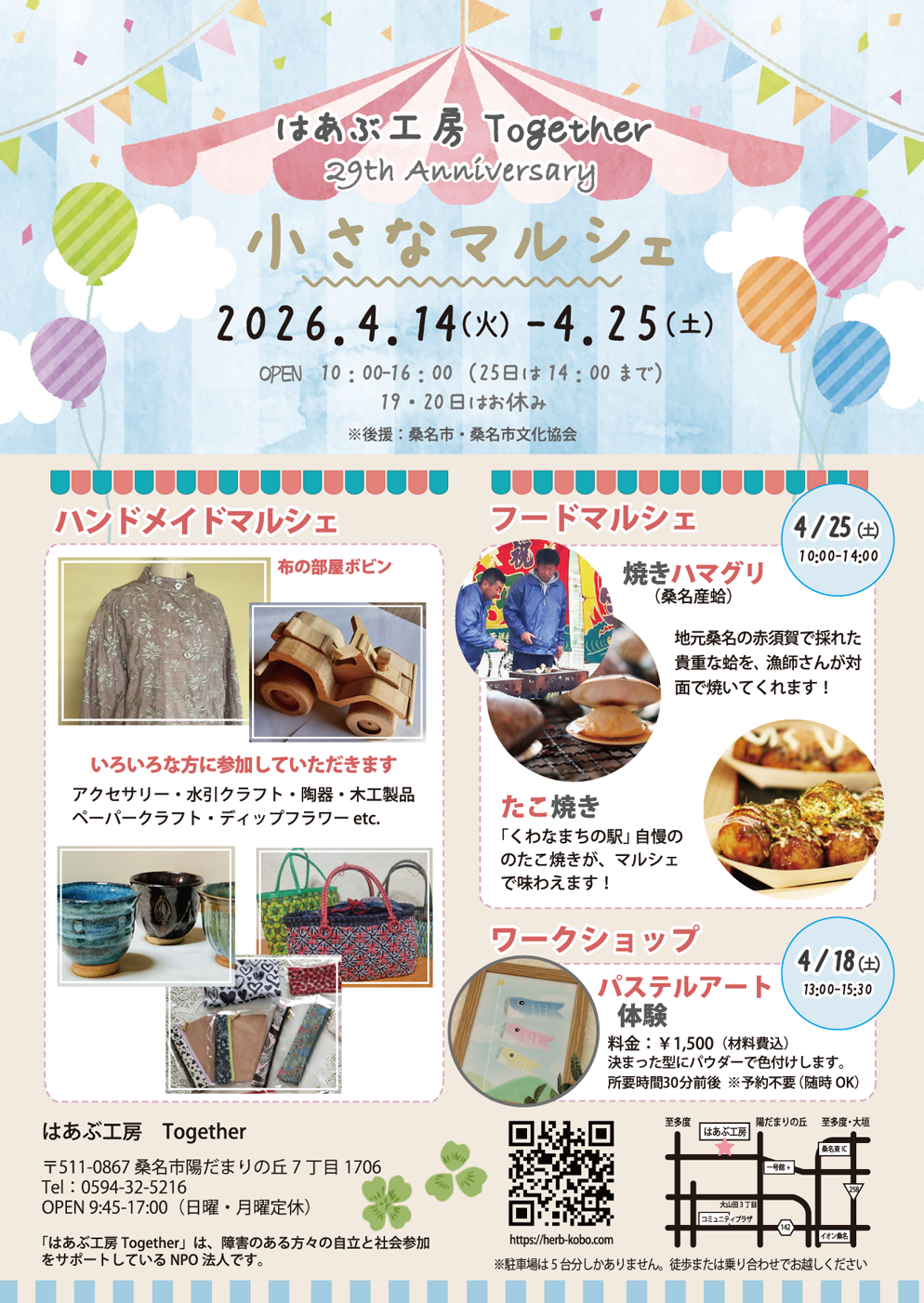 ●毎月 第2金曜日・第4木曜日に桑名市役所1Fロビーにて、シフォンケーキやハーブ製品の出張販売を行っています。※都合により第2金曜・第4木曜ではない場合があります。