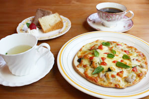 ハーブティーの他にも、「はあぶ工房」でしか味わえないフードとして、工房で焼いているこだわりの、ふわふわシフォンケーキ(種類は60以上)、オリジナルピザ(生地・ペーストにも自家製有機ハーブを使用)とハーブパンがあります。ぜひ一度お試し下さい。
