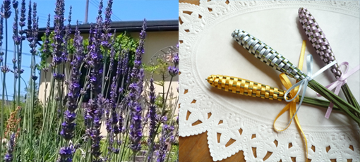 | 無農薬栽培の摘みたてラベンダーで香りスティックを作ろう! ¥2,500(スティック3本+ミニケーキセット付き) 定員2~6名 (事前予約制)※最少催行人数2名 ※ラベンダーの花の咲き具合によって随時開催も可能ですので、お気軽にお電話にてお問い合わせください。 |