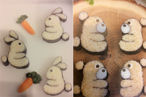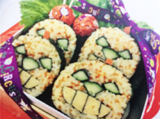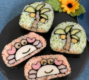 子供に人気のキャラクターです。 持ち物・・・エプロン・お寿司を入れる容器・保冷剤 飾り巻き寿司1級インストラクター 食品衛生責任者 大平 千歳 |