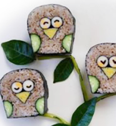 ユーモラスなちょい悪ペンギン。 持ち物・・・エプロン・お寿司を入れる容器・保冷剤 飾り巻き寿司1級インストラクター 食品衛生責任者 大平 千歳 |