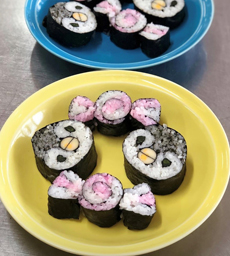 作って楽しい♪食べておいしい! 飾り巻き寿司 教室 持ち物・・・エプロン・お寿司を入れる容器・保冷剤 |