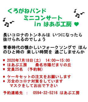 くろがねバンド ミニコンサート #5 in はあぶ工房 | |