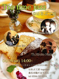 ティータイムのひととき JAZZがささやく・・・・・そんな音楽がしたい ※ライブタイムは、ランチまたはケーキセットのご利用をお願いします。 |