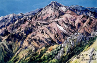 カナディアンロッキー(10月に)ミニヤコンカ山、四姑娘山(6月に)斜里岳(北海道)白馬岳、西穂高岳、宝剣岳、鈴鹿の山々(鈴北岳ほか)等々描きに出かけました。