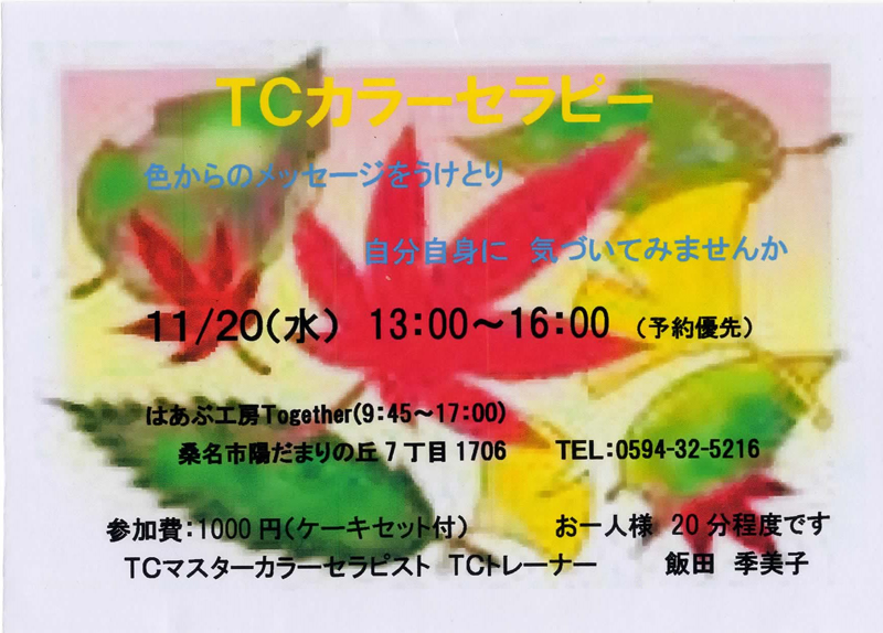 11/22(日)13:00-15:00 ホッとひといきティータイム |