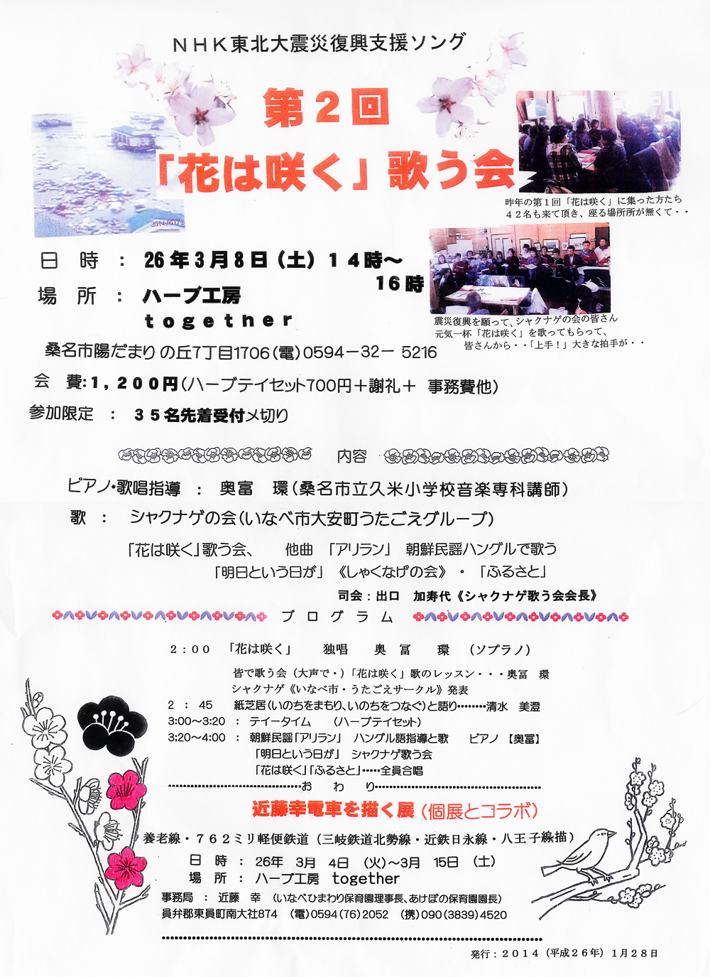 | 03/12(土) 第4回 NHK「花は咲く」歌う会 in 桑名 | |