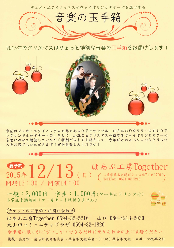12/23(祝)15:00 ~ ヴァイオリンとギターで奏でる「クリスマスコンサート」 |