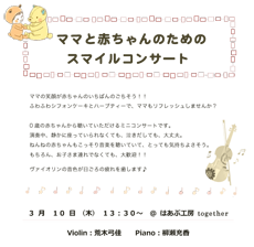 03/10(木)13:30~ ママと赤ちゃんのためのスマイル・コンサート |