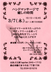 | 3/13(日) ホッとひといきティータイム 13:00~15:00 | ||