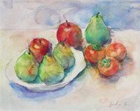 月2回、第1・3木曜日午後に町内の中部公園の中の研修棟をお借りして、季節の花や果物・時々人物画・季節に応じて野外に出掛けて風景画を描いています。 |